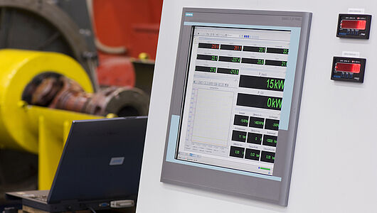 Nach den Anforderungen unserer Kund:innen führen wir auf dem DMT-eigenen Prüffeld die unterschiedlichsten Untersuchungen an antriebstechnischen Komponenten durch.