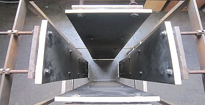 Der Prüfkörper besteht aus zwei Probenflügeln, die in einem Winkel von 90° zueinander angeordnet sind: „schmaler Probenflügel“ und „breiter Probenflügel“. Der schmale Probenflügel hat eine Breite von (495 ± 5), der breite Probenflügel hat eine Breite von (1 000 ± 5) mm; die Höhe beider Probenflügel ist mit (1 500 ± 5) mm identisch. Die maximale Dicke der Probeflügel beträgt 200 mm. Materialien mit einer Dicke von mehr als 200 mm sind auf eine Dicke von 200 mm zu reduzieren. Das Prüfverfahren ist vorrangig für ebene, flächige Probekörper ausgelegt. Rohrisolierungen können ebenfalls geprüft werden. Probekörper sollen stets die praktische Anwendung repräsentieren.
